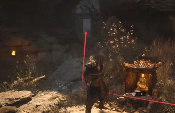7.穿过山洞,看到下一个土地庙的指引光线,左边有灵蕴捡,然后走左边的路上去,发现山洞中的石母。