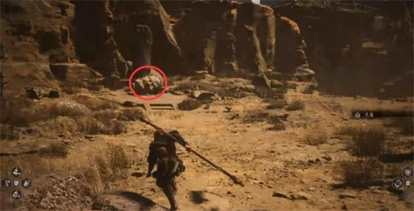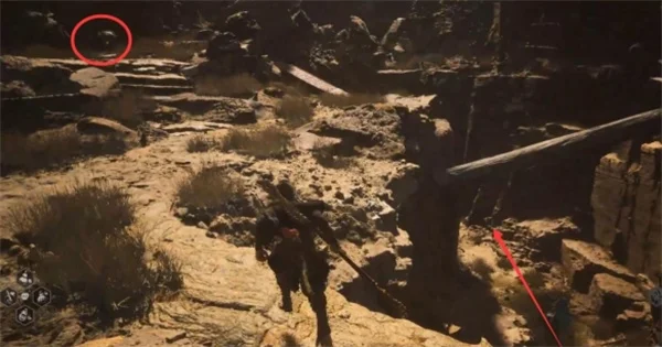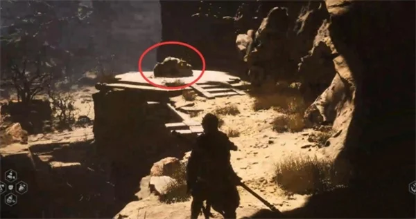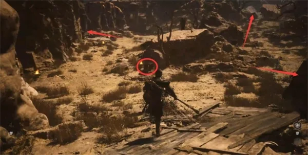 4.从阶梯上下来,附近看到一条山沟, 山沟左侧 拿到第三个【佛目珠】,然后下去到山沟里,沿着山沟走到头,就会遇到石中人。