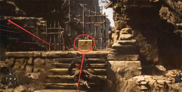 3.土地庙右边阳光下的区域有个可以上去的阶梯,拿到个宝箱,继续 走上阶梯到顶部 ,拿到第二个【佛目珠】。