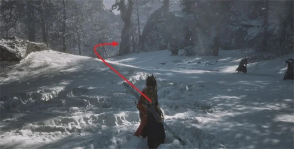 2.沿路前进,在拐弯处往右走会看到一大片雪地。