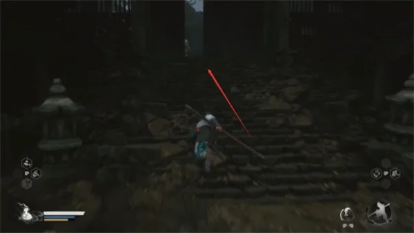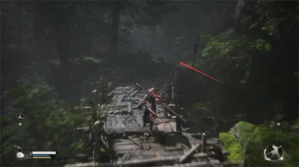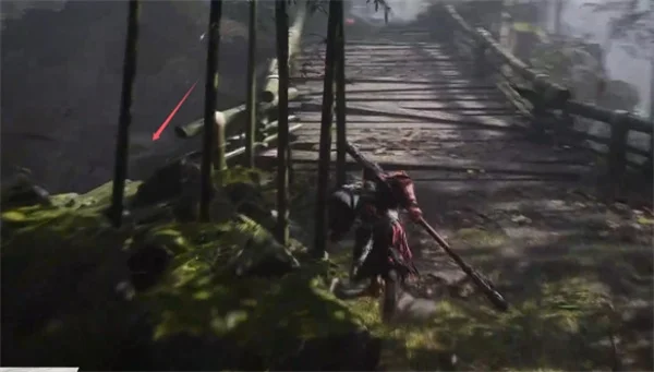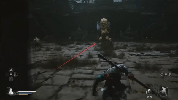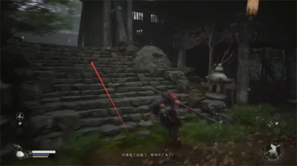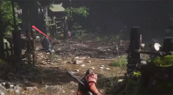 1、玩家战胜黑风大王后,直走通过左边的台阶和一条往上走的小路,继续通过破旧的屋子。