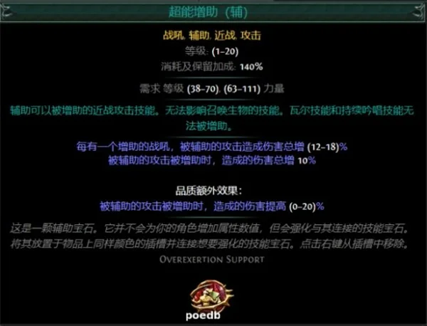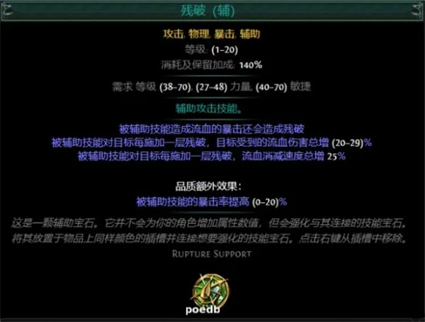 品质额外效果:被辅助技能的暴击率提高 (0–20)%。