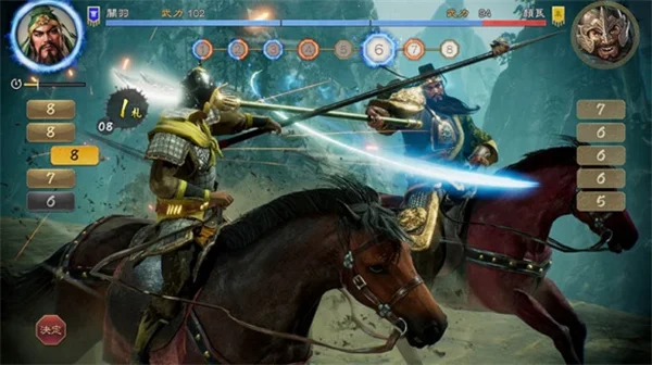 三国志8保有的各路英雄豪杰们交手的单挑也将全面翻新,展现了精致的3D人物模型带来的华丽动作戏,同时单挑双方全程皆有语音。玩家可享受更具魄力的单挑系统。