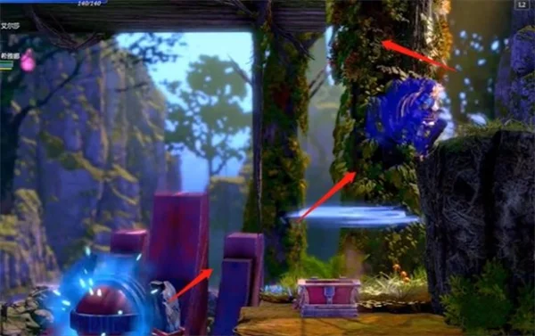 我们可以优先来到幽光森林地图,来到地图的传送机器这里,位置如下图。