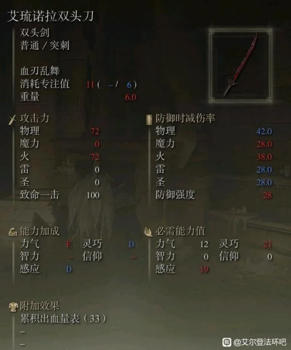 击败这个NPC以后,我们可以得到她的双头剑,外观十分炫酷,这把武器同样也是这个支线的独特物品,过了这村没这店,贴一下这个武器的属性和外观