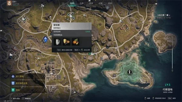 1. 玩家可以打开世界地图在地图中找到聚落,点击后可以查看到聚落的部分信息,包括聚落名称,推荐等级,聚落探索任务目标,可获取的资源等。