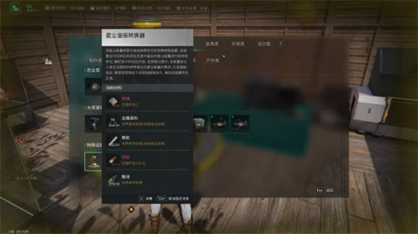 1. 首先玩家在庇护所内放置一个“星尘谐振转换器”。目前“星尘谐振转换器”无需解锁模因,玩家可以在建筑目录下的设施类中找到“星尘谐振转换器”。