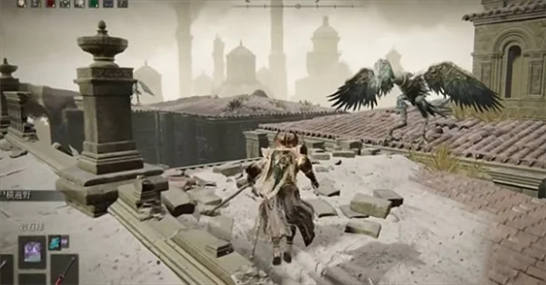 接着我们从鸟怪的左边往另一个房子屋顶走,一直走到另一个鸟怪旁边。
