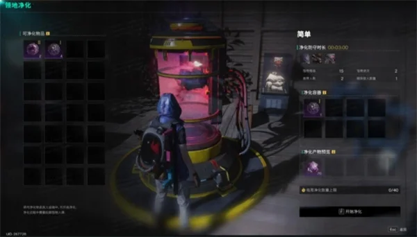 3.右侧会显示本次领地净化的基础信息包括:难易度,净化防守时长,净化容器,净化产物等。
