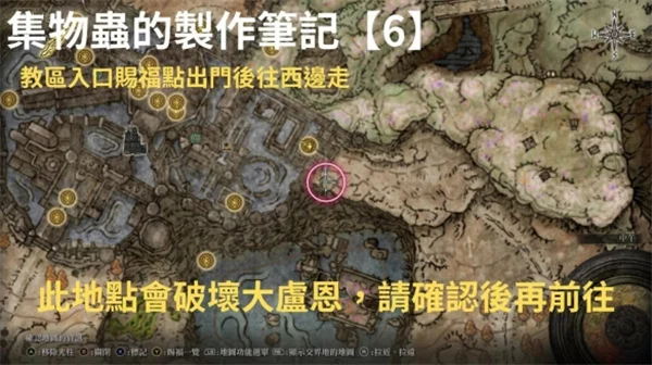 注意:若大卢恩破碎之后,选择穆尔继续一直伤心的话,会死在圣战教堂附近,则无法取得其他制作笔记了。