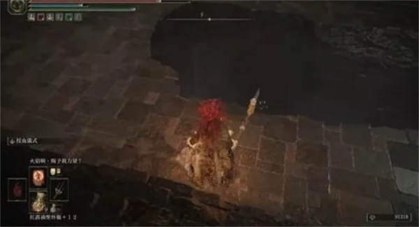 之后我们先往右前方走中间有不少缺口,要小心,到底后会看到一个红色混蛋