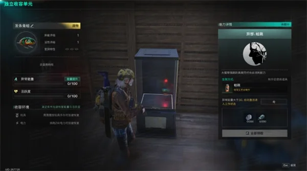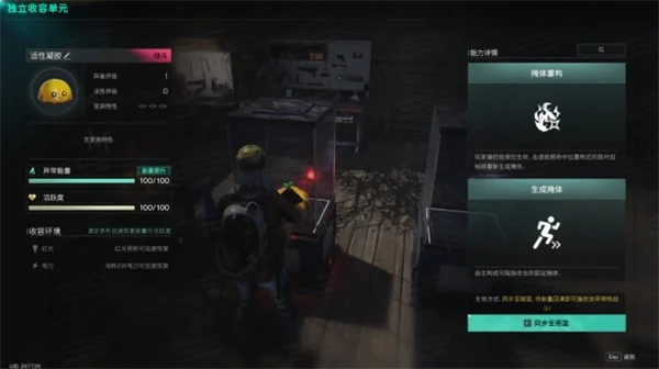 默认:异常能量大于30时会自动进入工作状态,激活状态下造物型异常物会生产专属资源。