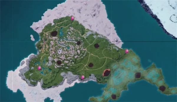 玩家可以去图中的位置找到这四颗技能树,樱花岛版本有很多新的技能果实可以获得,玩家可以给帕鲁用这些技能果实让他们学习到新的技能。