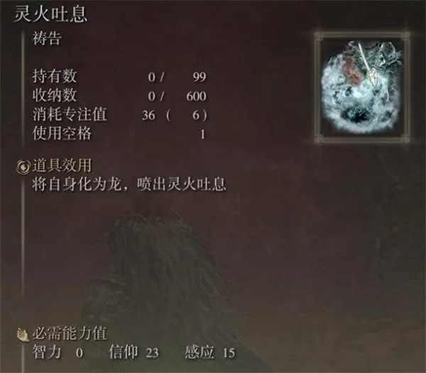 灵火吐息是龙飨祷告中的一种,能将自身化为龙,喷出灵火吐息,借由蓄力能延长喷出吐息的时间。