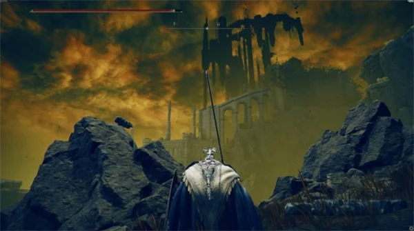 1. 先去获取绘画神之塔,画在下图位置,从dlc第一个篝火直接过去,地点在神殿镇废墟篝火附近(ps:需要打完梅瑟莫和劳弗遗迹烧树,显露出神之塔才能触发此画)。