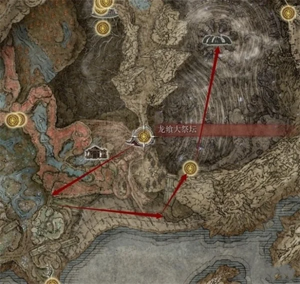 5、第一个指头遗迹需要我们来到龙飨大教堂,然后我们往巨型石像龙的后面走,进入一片红色的花海。
