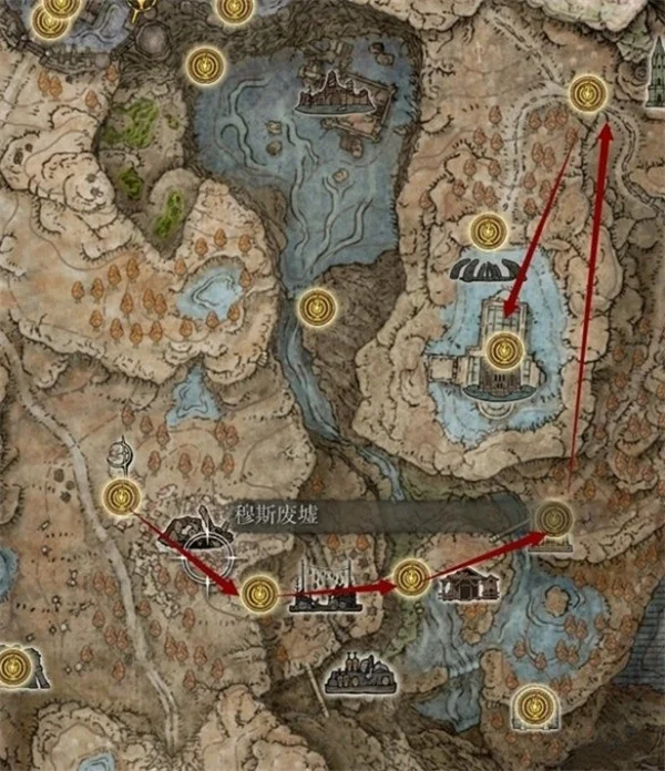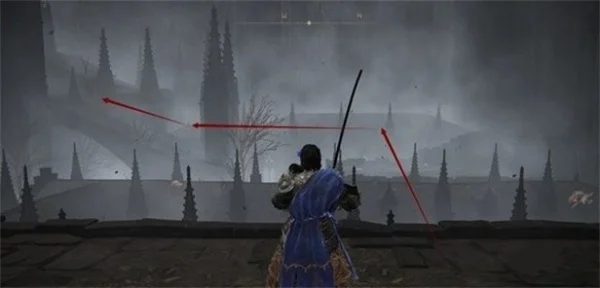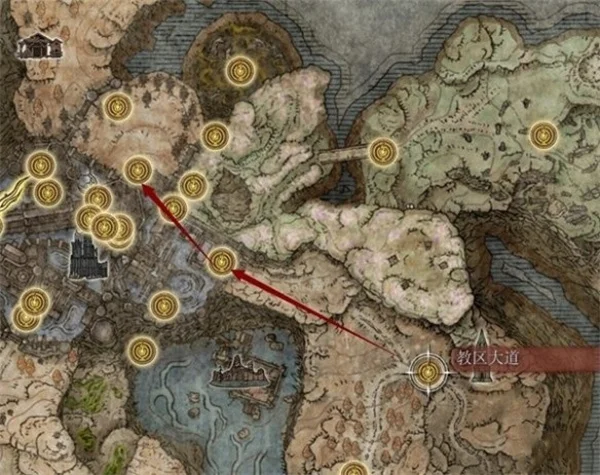 12、我们前往教区大道赐福点,然后跟着图中的路线进去,这里面一开始是被水淹的。