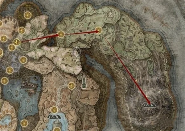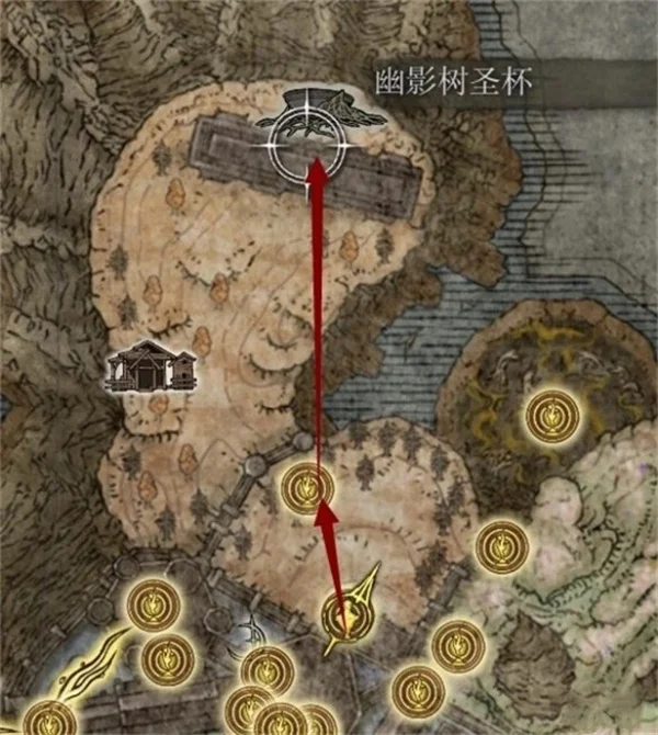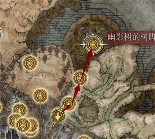 16、进入深处的升降机首先我们需要来到礼树暗道,然后沿图中路线一直到幽影树的树脚,可以挑战BOSS幽影树的化身。