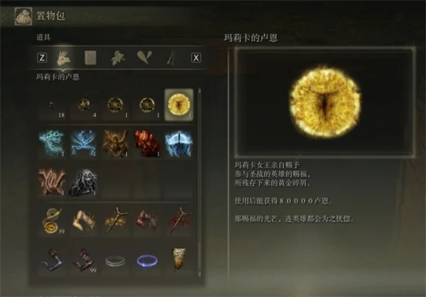 玩家可以按照上面的路线就能找到玛莉卡的卢恩,玛莉卡的卢恩使用后能获得80000卢恩,在惩戒要塞城外沿着城墙走能找到玛丽卡的祝福。
