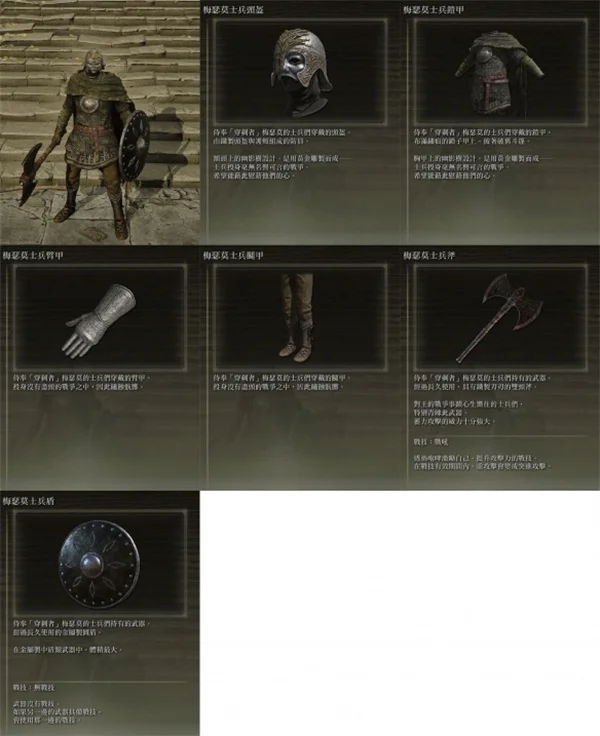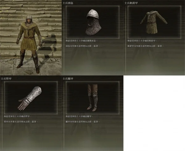 1. 黑骑士套、士兵套、梅瑟莫士兵这三套都能在恩希斯城前方以及恩希斯关卡刷。