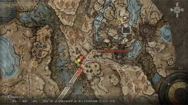 2. 城的前方敌人配置比较分散所以用颜色标记,黄色星星是黑骑士,橘色圈是小兵,红色圈是梅瑟莫士兵。顺序照下图箭头走,先往左走干掉两个士兵跟黑骑士,靠近黑骑士那的有两持火炬的士兵貌似不会掉东西,往道路中间走是两个操控路中弩炮的士兵,再往桥那走会见到四个梅瑟莫士兵,这里好处是能招骨灰帮忙,打黑骑士比较没压力。