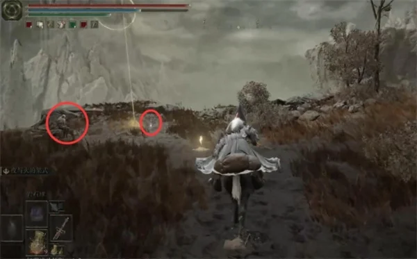 1、先过艾拉克大桥,然后前往下图的通柱坡的十字记号位置,商人休里耶就在这里。