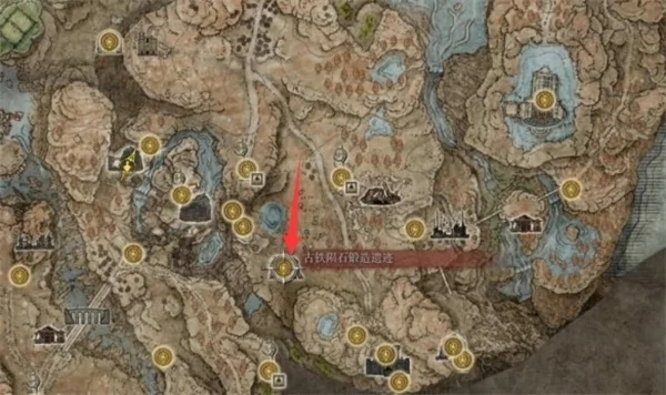 流纹矛也是在幽影亚坛古铁陨石锻造遗迹里可以拿到,不过它在在第一道机关门就能拿到,古遗迹位置如下图: