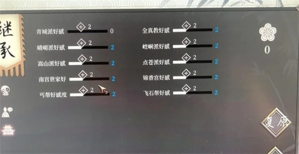 1. 门派好感度是可以在0点数情况下点出1点,变成2好感。