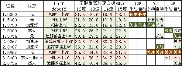 这类重炮需求攻速有两种,推荐选择怒火扫射上5F栏,这时12速需求28%攻速,其余对表查询即可。