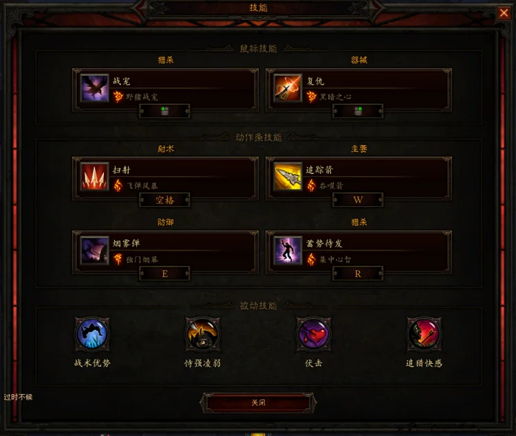 进入大秘后左键叠动能层数,然后全程按住右键扫射。每个4秒补一发左键维持动能层数。复仇和蓄势待发cd好了就放。烟雾弹主要用来躲伤害以及赶路。战宠如果是狼,则遇到精英时释放;如果是猪,则不用主动释放。