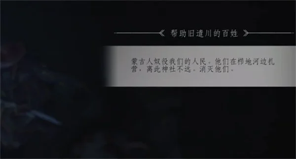 这个任务地点是在一个桥边,但是依旧是旧谴川废墟的范围内,目标点是个怨灵神社,这次说的是要对付蒙古士兵。
