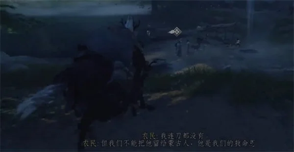 2、交谈得知僧人堂舜为了保护这里的农民们被蒙古人带走了,境井感叹于僧人的大义,并扬言要去救僧人。