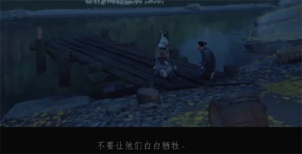 4、杀完敌人后我们在屋中并未找到农民的妻女,反倒是在河中发现了血迹。