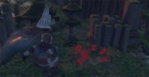 1、跟着指引来到目标位置处,找到一处有红花的地方,拿到栉寺的法器,其他的地方也可以搜刮一下。