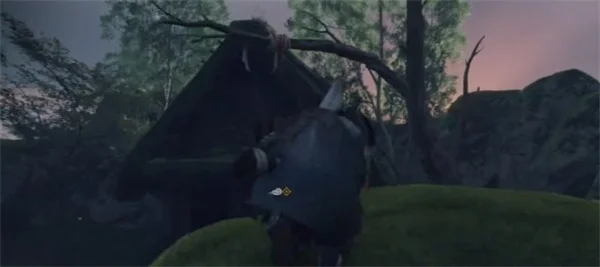 5、到达目标地点后这里的人闭门不开,我们找个高点的岩石利用树枝从窗户荡进去。