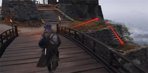 1、从境井寨往外走,过身后的木桥并右转下桥边的台阶。