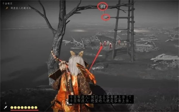 ps:这里可以借助于中途树上的钩绳荡过去,然后来一招从天而降的招式将周围敌人给暗杀掉。