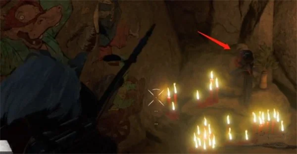 4、进去之后就能看到满墙的壁画,还有放在烛台中间的天狗面具了。
