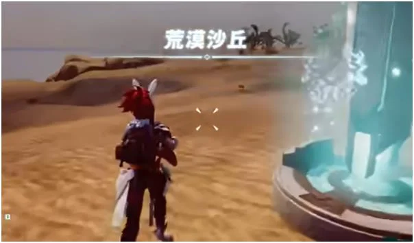 2、首先在地图中找到沙漠地区的传送点并点击传送。