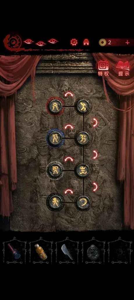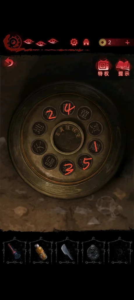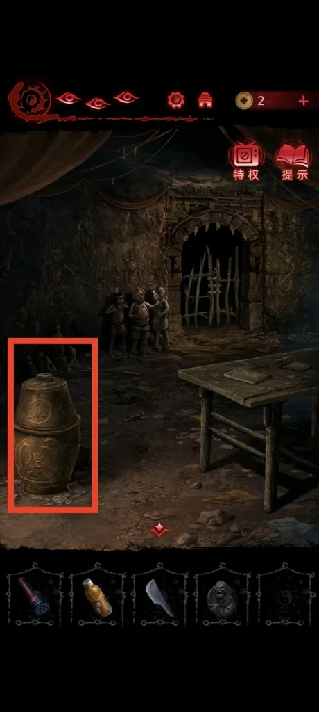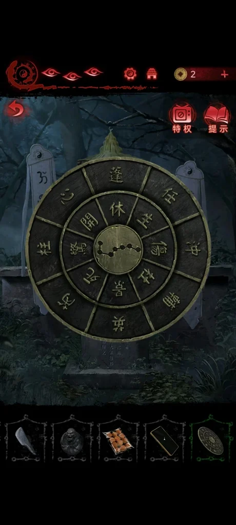 8、进房间,不倒翁放玩具中间后解除空气墙,拾取中间的旗子和元宝。去墓地,先看线索后拿出面包和元宝放桌上,元宝摆放位置如线索所示摆放后解锁地图。
