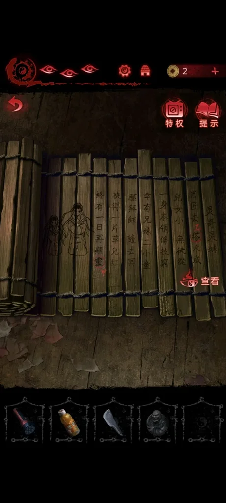 2、按照线索,找位置摆放后获得小刀,切开袋子后获得衣服,烧给葬老六之后解锁新路。
