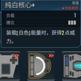 装载2个白色能量就是+4威力,前期(相比其他普通攻击部件)乱杀。