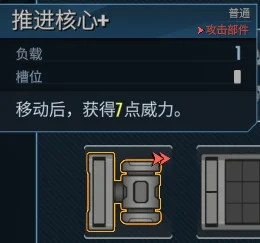 下限是每场战斗结束自动回1燃料,所以不用白不用,可以移动1次,【推进核心】提供5威力。