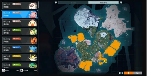 打开地图,在下图当中的所有标注橙色区域的位置都可以捕捉到捣蛋猫,时间分为白天和晚上
