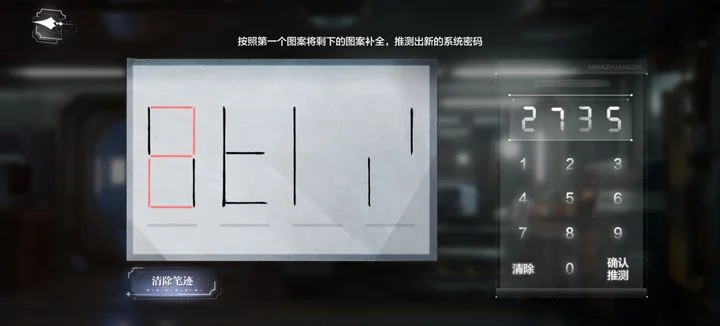 继续收集所有线索,由图退出,密码是2735 出门,进入下一个场景