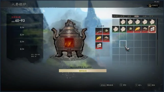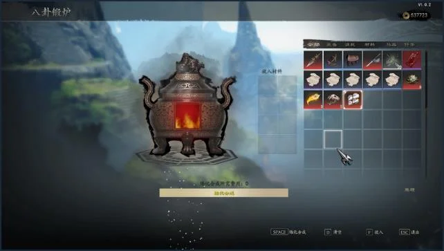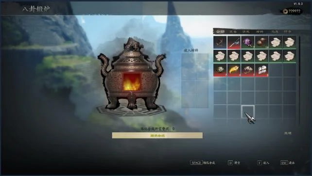 还是以百鸟朝凤枪为例,这次实现不耗费材料和底材装备的八卦炼金。准备如下图:其余装备扔仓库