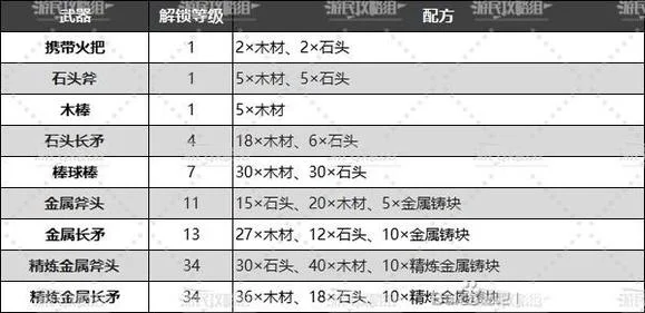 近战武器虽然很原始,但在近距离接触时能够保证稳定输出并且耐用。携带火炬、石头斧和其他近战在前期可以作为万金油武器来使用,既容易制作又有效果