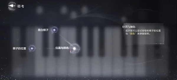 继续收集线索,离开花园,进入钢琴房,收集线索后,去思考将线索关联,按照白色旗子位置弹钢琴。