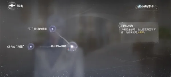 出门后,继续过任务,取走阵眼,回去,点左边的吓消音,得到图三,点击左下角思考,将两个线索联系起来,得到图四,然后将阵眼给左边吓消音,成功逃脱,跟他回家。