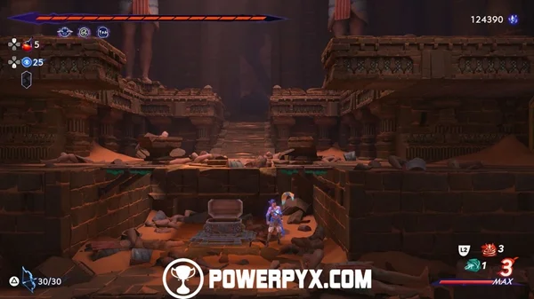 要让这个宝箱出现,请从右上方向下拉,向前冲刺,然后跳回中间并下降。你必须为此快速,否则你会被压垮。